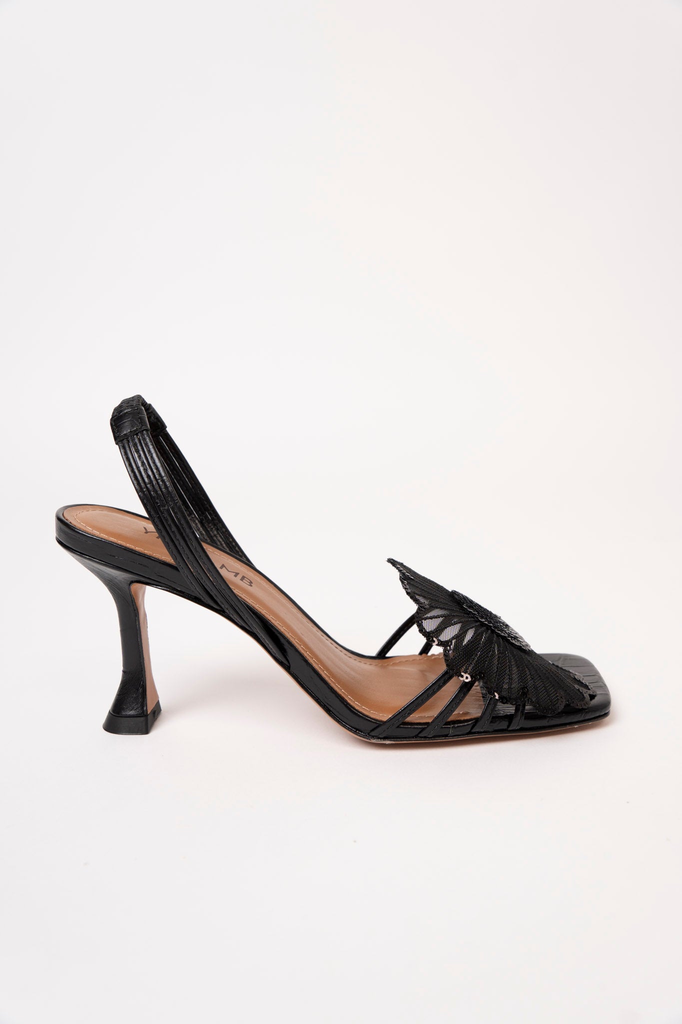 Introducing Yago, our slingback sandal with flute heels. Crafted from high-quality materials, this shoe features a rich crocodile skin textured leather that exudes luxury while ensuring durability and comfort. A sequin and tulle flower adorns the toe, providing a playful yet refined accent that enhances her overall aesthetic.