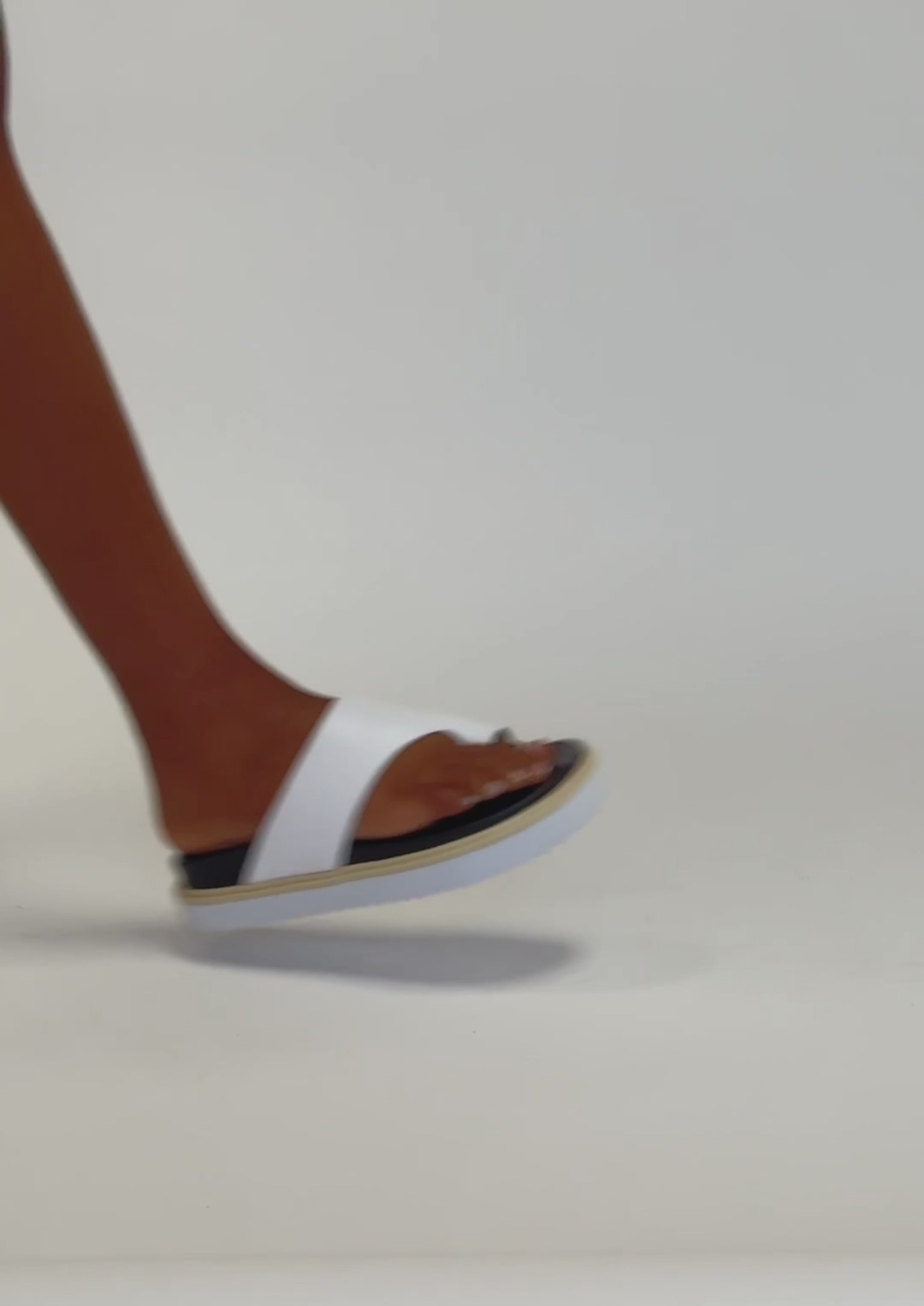 Sinmi is the chill chic sandal that captures the spirit of exploration. The white upper of the sandal contrasting with the cream trimmings combines style and comfort, making it the perfect choice for a day out by the beach or a chill day to wander while looking chic.